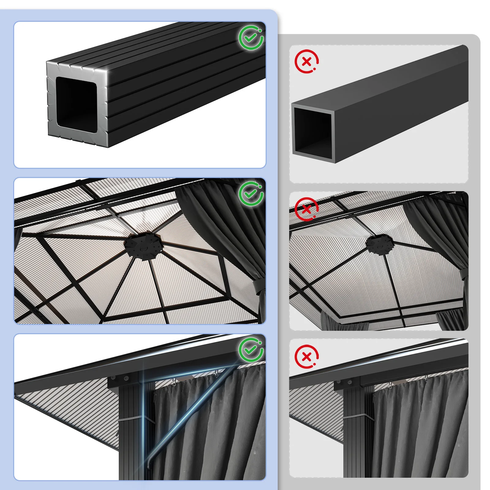 Equipped with four-sided adjustable blackout curtains, it can be transformed effortlessly: fully withdrawn for an open-air leisure area, ideal for pool parties or garden parties, or fully closed, to create a private retreat suitable as an outdoor changing room, meditation area or temporary storage room. Made of waterproof, abrasion-resistant fabric, these curtains offer a good balance between privacy and durability and adapt seamlessly to different usage scenarios.
