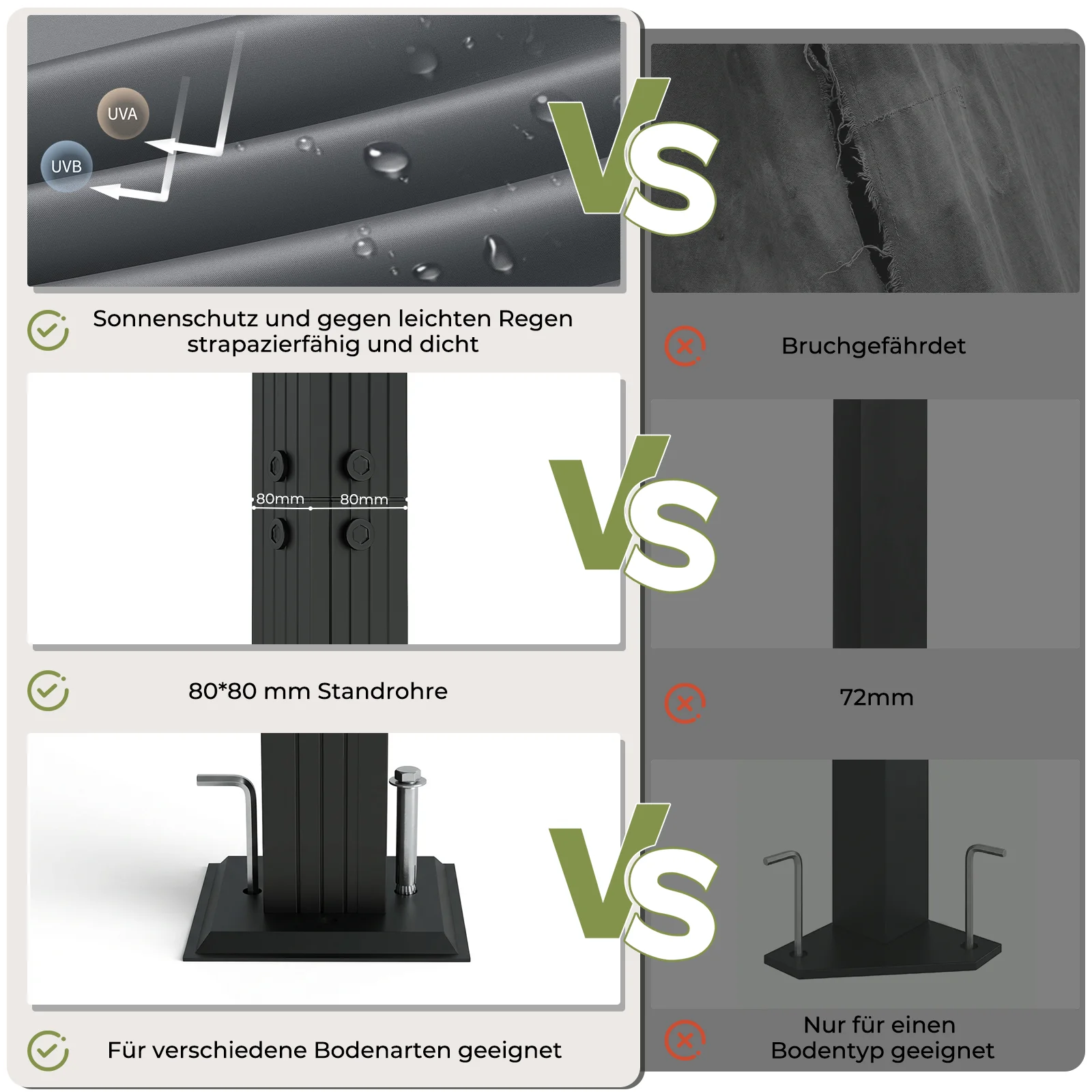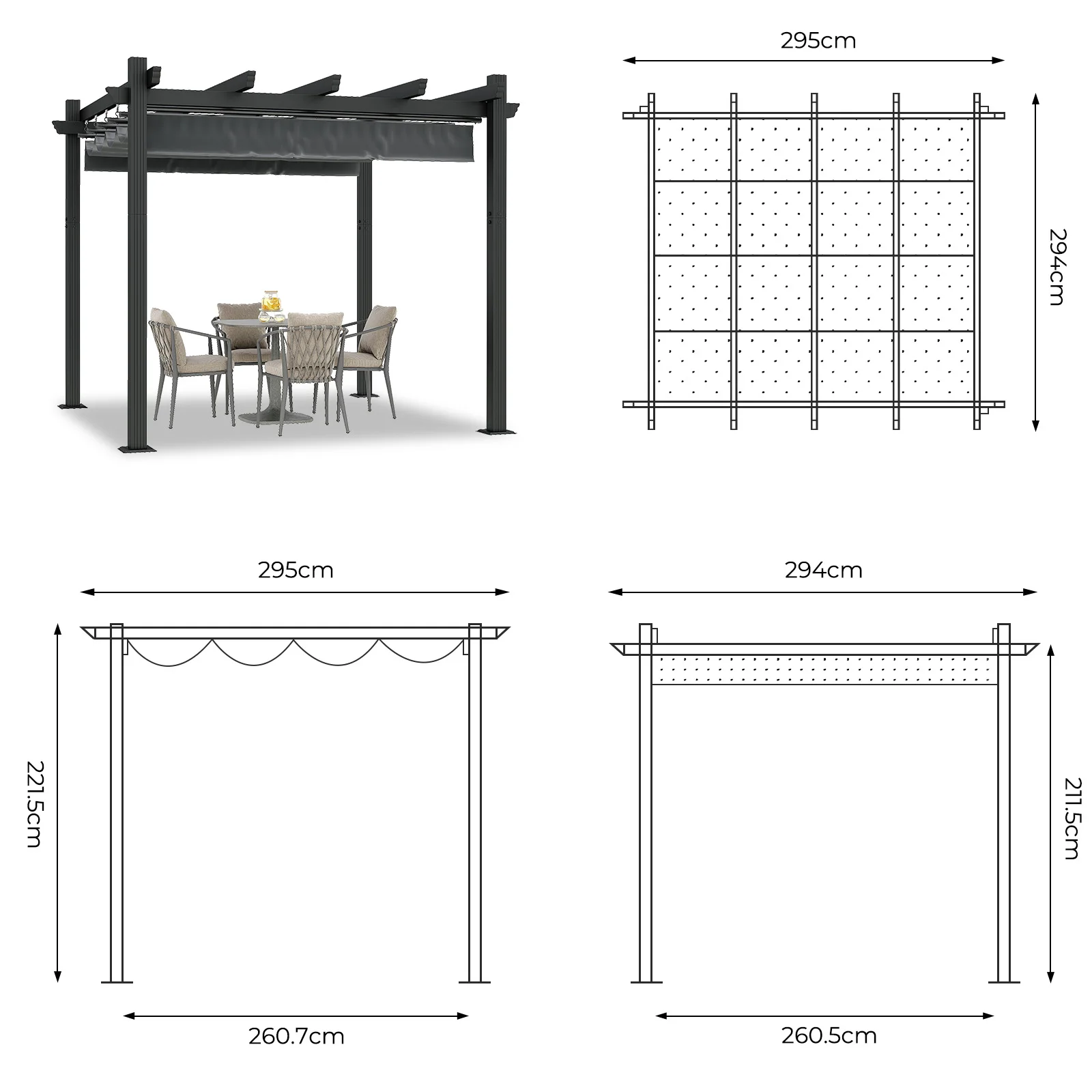 The overall construction is stable and extremely wind-resistant. Combined with reinforced connectors and a sturdy plinth, it will stand securely without sway after installation. It is suitable for various outdoor areas such as courtyards, terraces, gardens and villas and offers increased security.