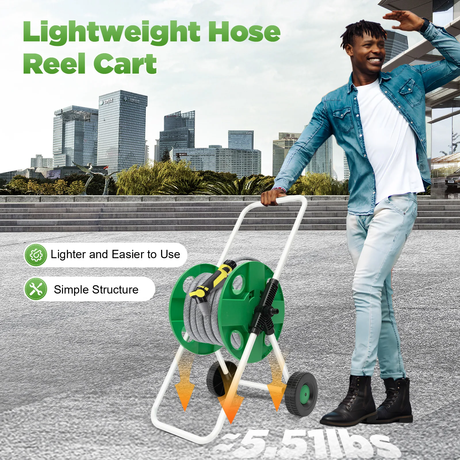 Garden Hose Reel Cart Holds 50m 1/2″ Hose, Lightweight Portable Water Hose Storage with Wheels Crank for Patio Lawn Yard