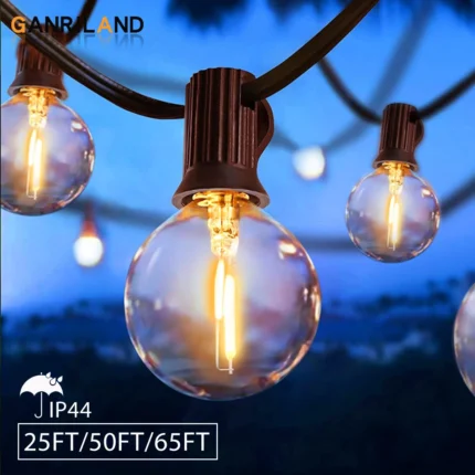 GANRILAND 65FT Outdoor Garland String Lights Dimmable E12 Sockets G40 Globe Led Bulb Connectable Gard Decor Fairy Light Chain